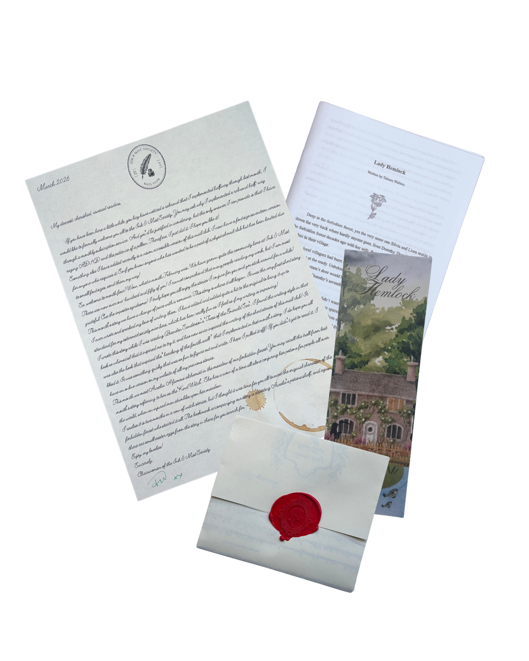Receive a beautifully packaged short story, along with a letter and themed bookmark (containing hidden easter eggs), all written and designed by me, in the post. Become a member to be sent a new letter and story each month (you can cancel anytime).