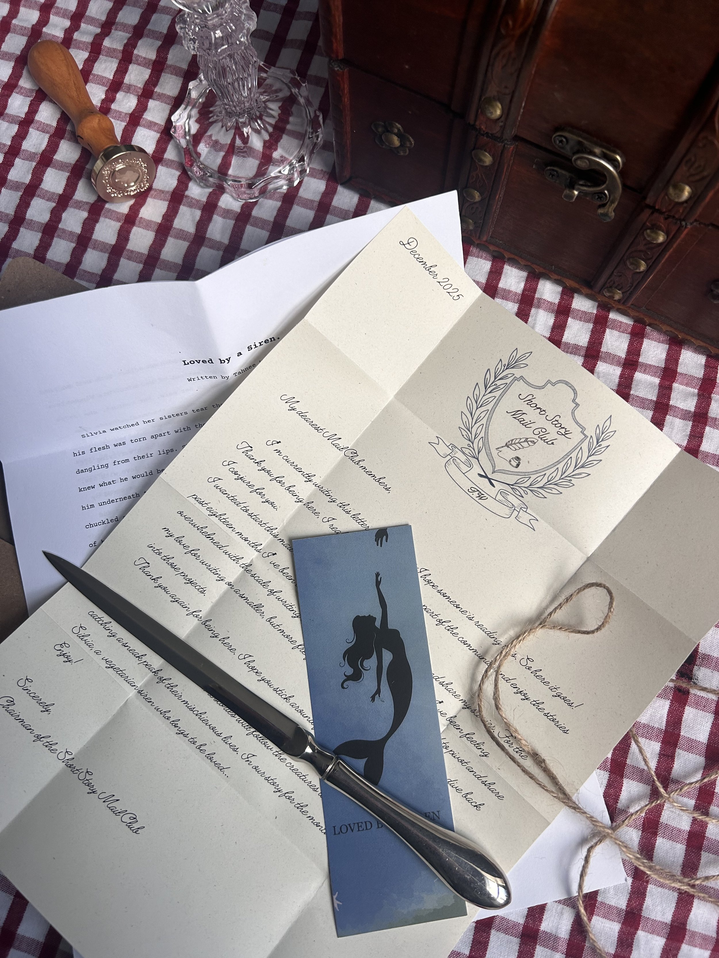 Receive in the mail each month: 1500-2500 word short story, written by meLetterBookmark matching the theme of the short story, designed by me